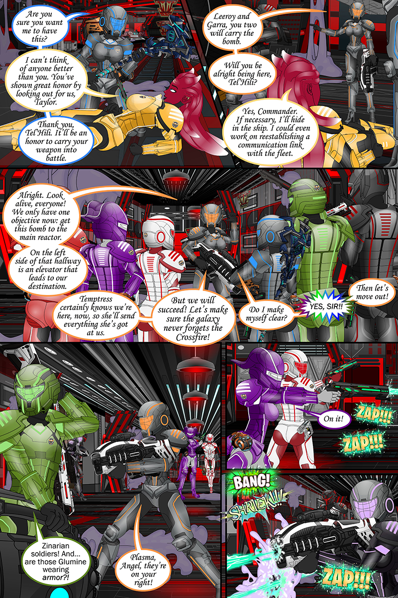 “Under heavy fire from the swarms of Glumine, Temptress finally shows her face, wanting to bring an end to the Crossfire crew herself.”