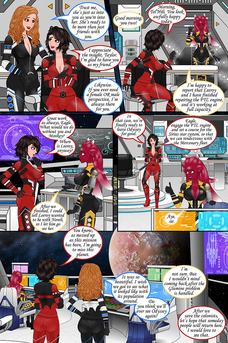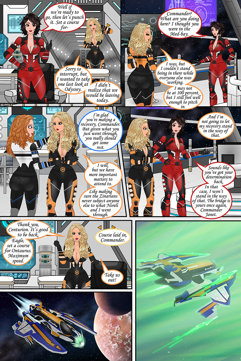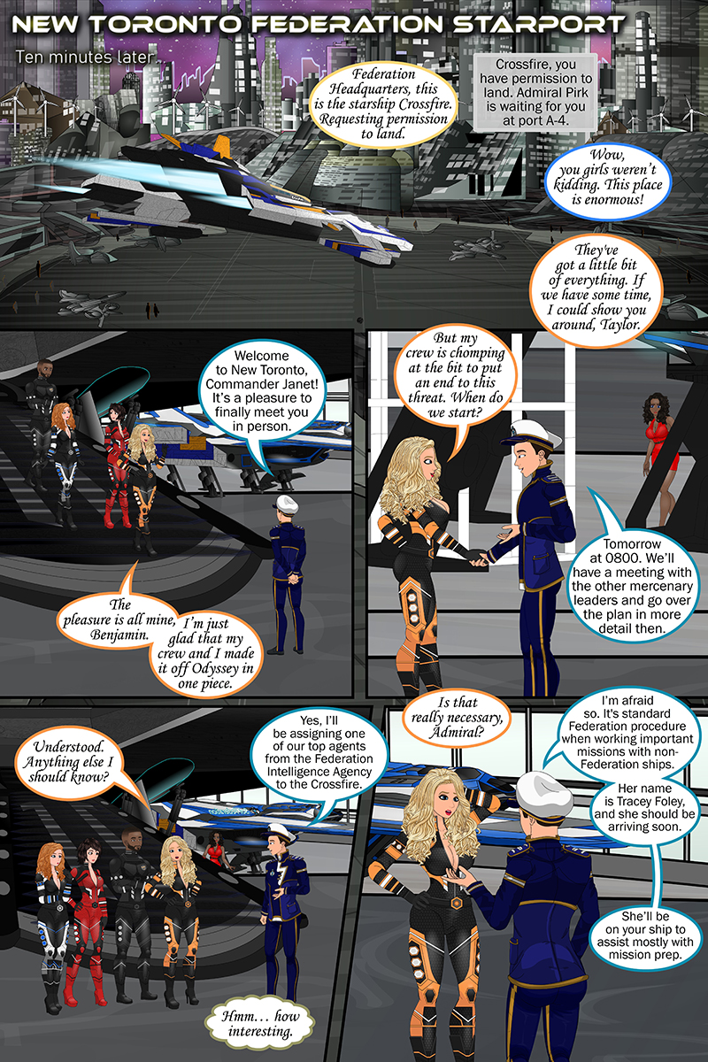 “The Crossfire prepares to leave the planet of Odyssey for the final time.”