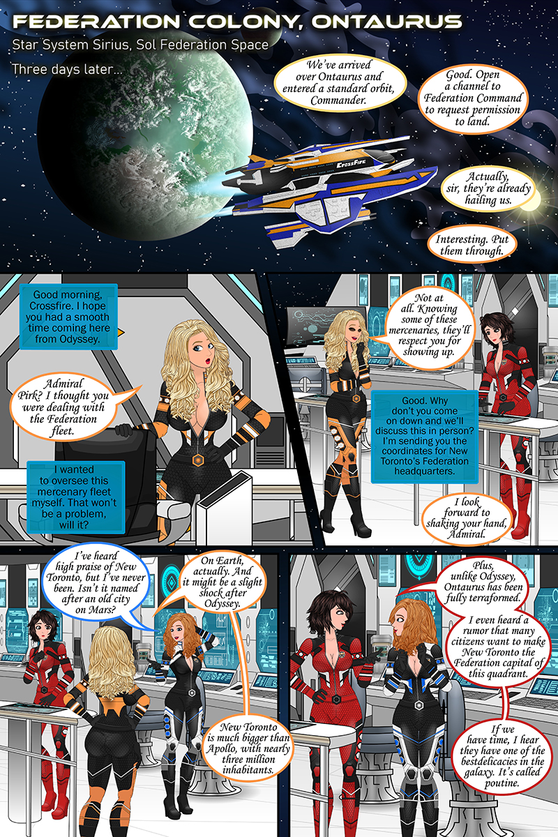 “Touching down in New Toronto, the crew meets up with Admiral Pirk, while a familiar face lurks in the background.”