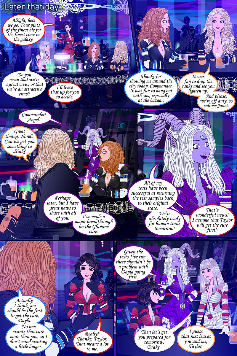 “Meanwhile, the rest of the crew enjoys their first shore leave in weeks.”