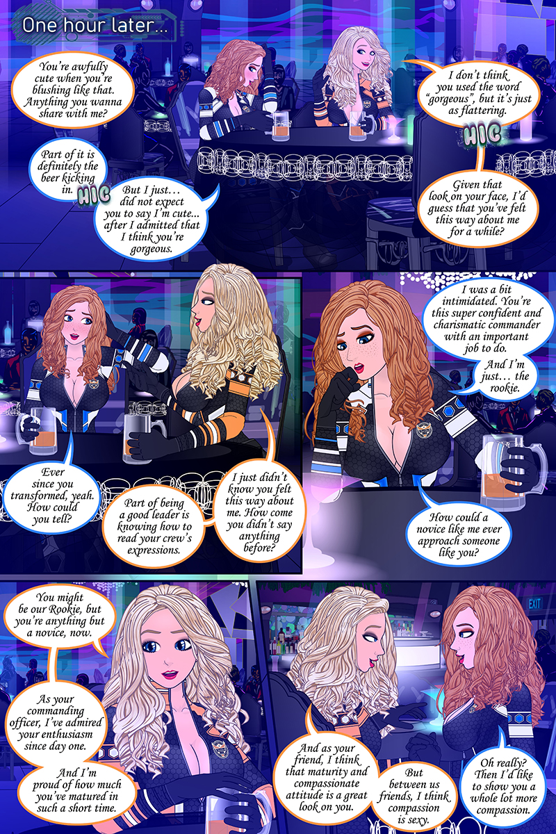 “The Rookie and the Commander continue to mingle over drinks.”