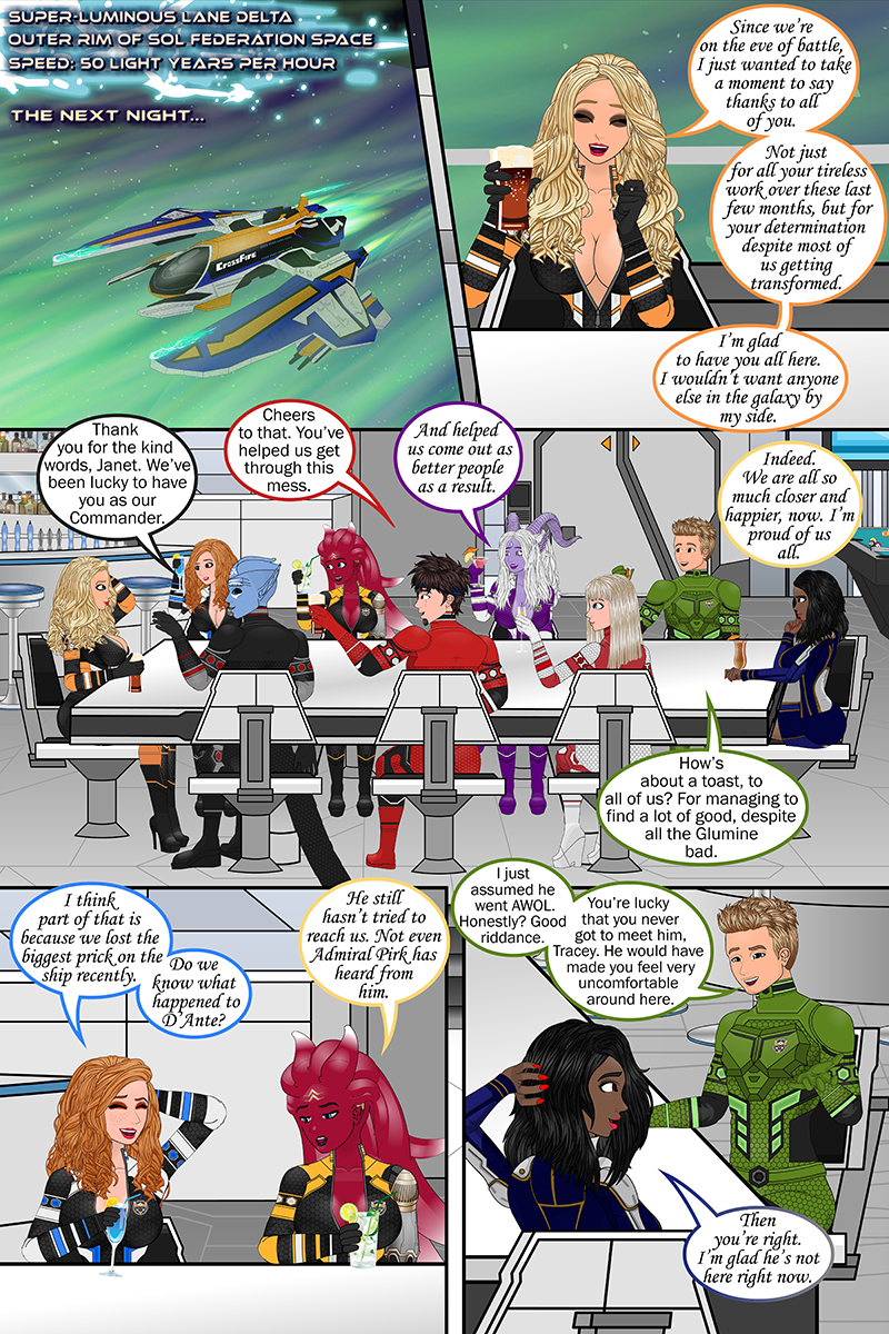 “The crew gathers together on the eve before the big finale raid on Grand Helix.”